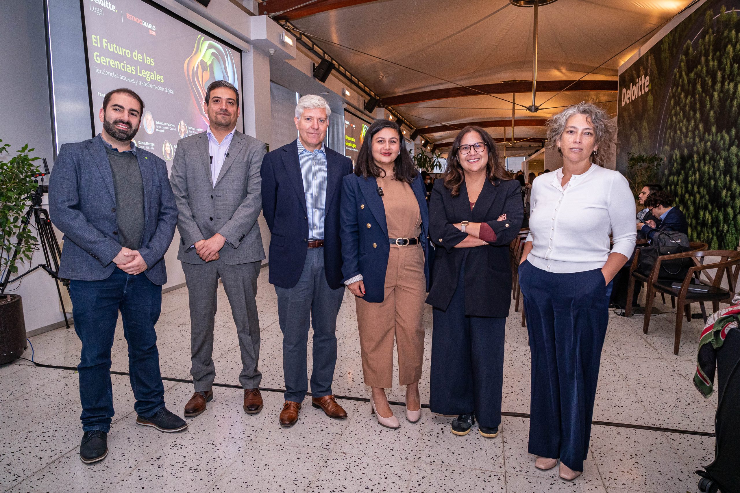 De esto dieron cuenta Dafne González (Gerente de Asuntos Legales Operacionales en Falabella), Sebastián Palacios (Senior Corporate Counsel Microsoft Chile & Argentina), Bárbara Leighton (Head of legal en Unilever), y Daniel Merege (Director de AI and Data en Deloitte), en un panel que moderó el director de EstadoDiario, Raúl Urbina.